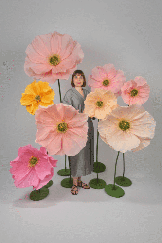 El papel es un material que cuenta historias. Cada flor gigante que creamos combina: